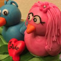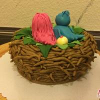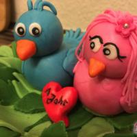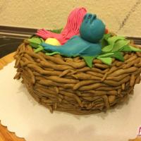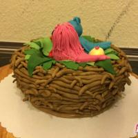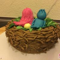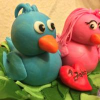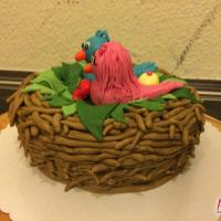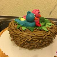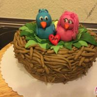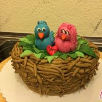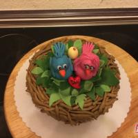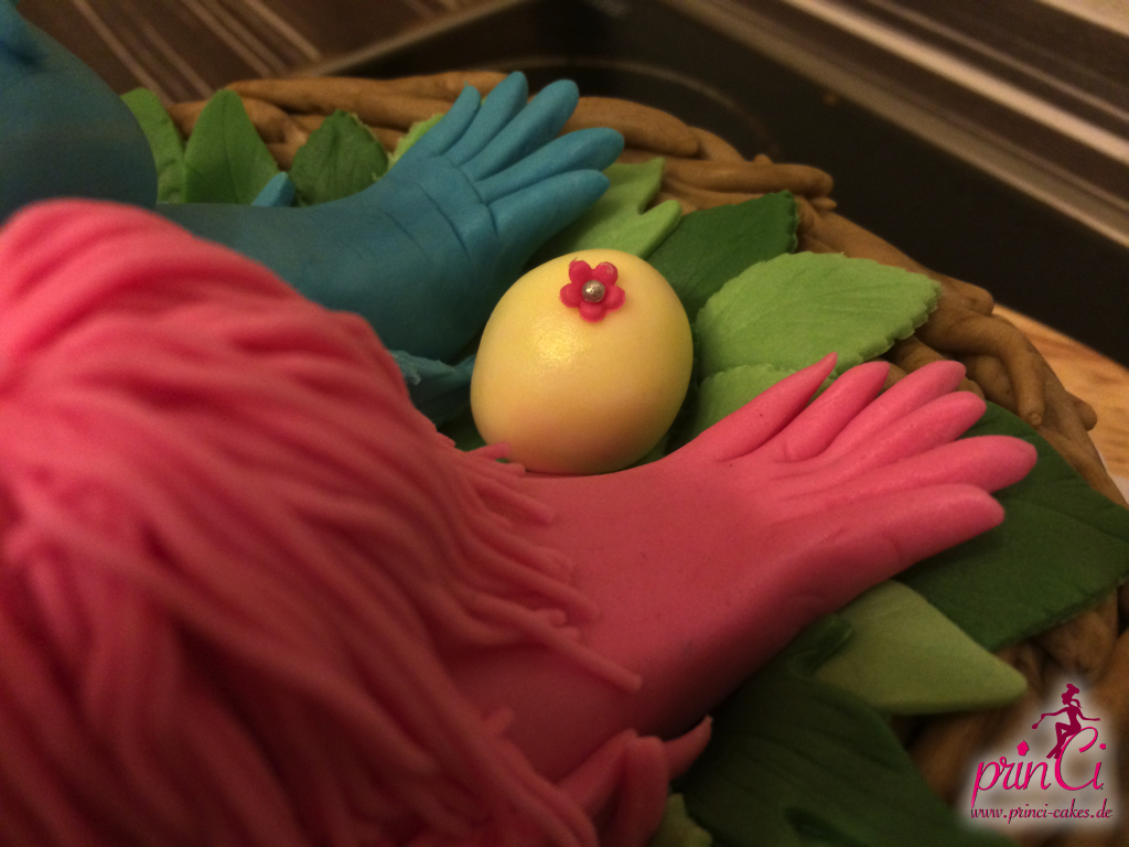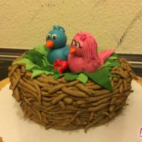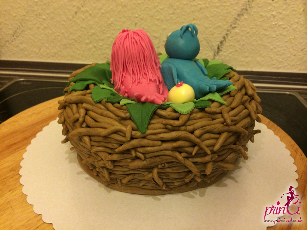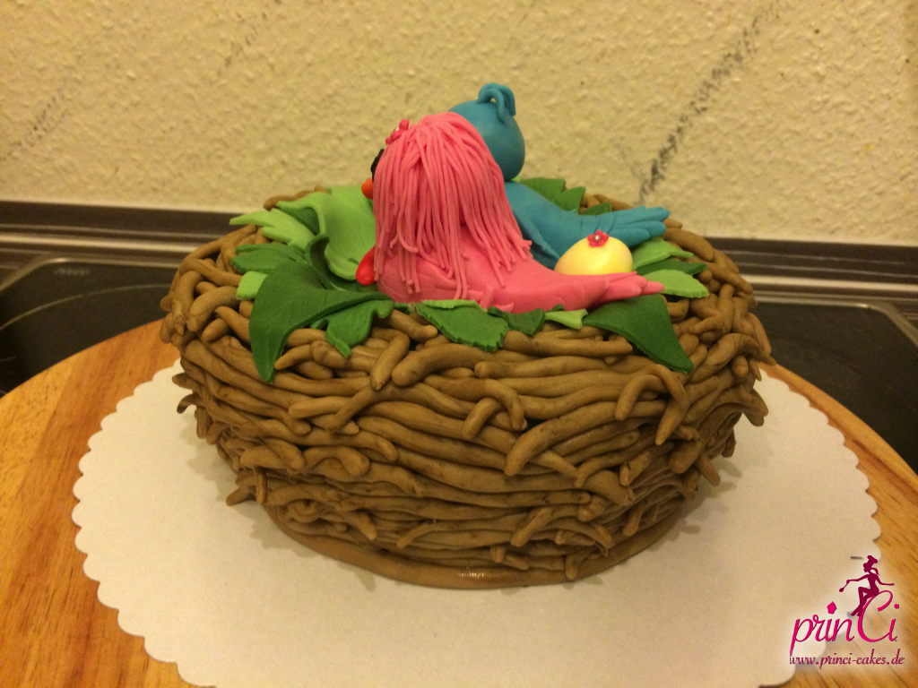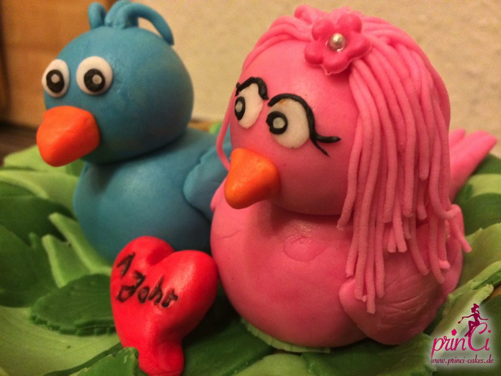 Zum 1. Hochzeitstag einer Freundin gab es eine zuckersüße Torte in Form eines Vogelnestes. Mit zwei Vögelchen aus Fondant und einem Ei für das süße Kind :)